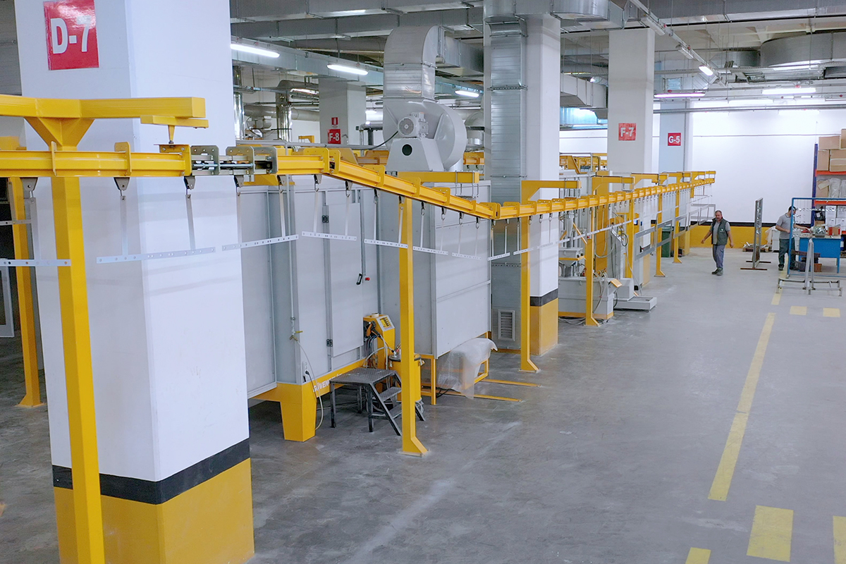 Parçaların tamamı 170 metrelik proses tünel konveyör hattında ters ozmos arıtma sistemi ile, nano teknolojili dört banyolu yüzey temizleme bandından geçip, kurutma fırınında kurutuluyor. Boyama kabinlerinde lazer bariyerleri sayesinde X-Y-Z robot teknolojisi ile elektrostatik toz boyama işlemlerini gerçekleştirip, pişirme fırınından geçtikten sonra boyama işlemleri sonlandırılıp, parçalar sınıflandırılarak, IEC60529 normuna göre poliüretan conta dökme makinasında contalama işlemi gerçekleştiriliyor. Barkod sisteminde barkodları okutularak çıkışları yapılıp montajlanarak panolar elektro-montaja hazır hale geliyor.